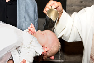 Oft trauen sich die wenigsten Gäste, nah an das Taufbecken zu treten und Fotos zu machen.